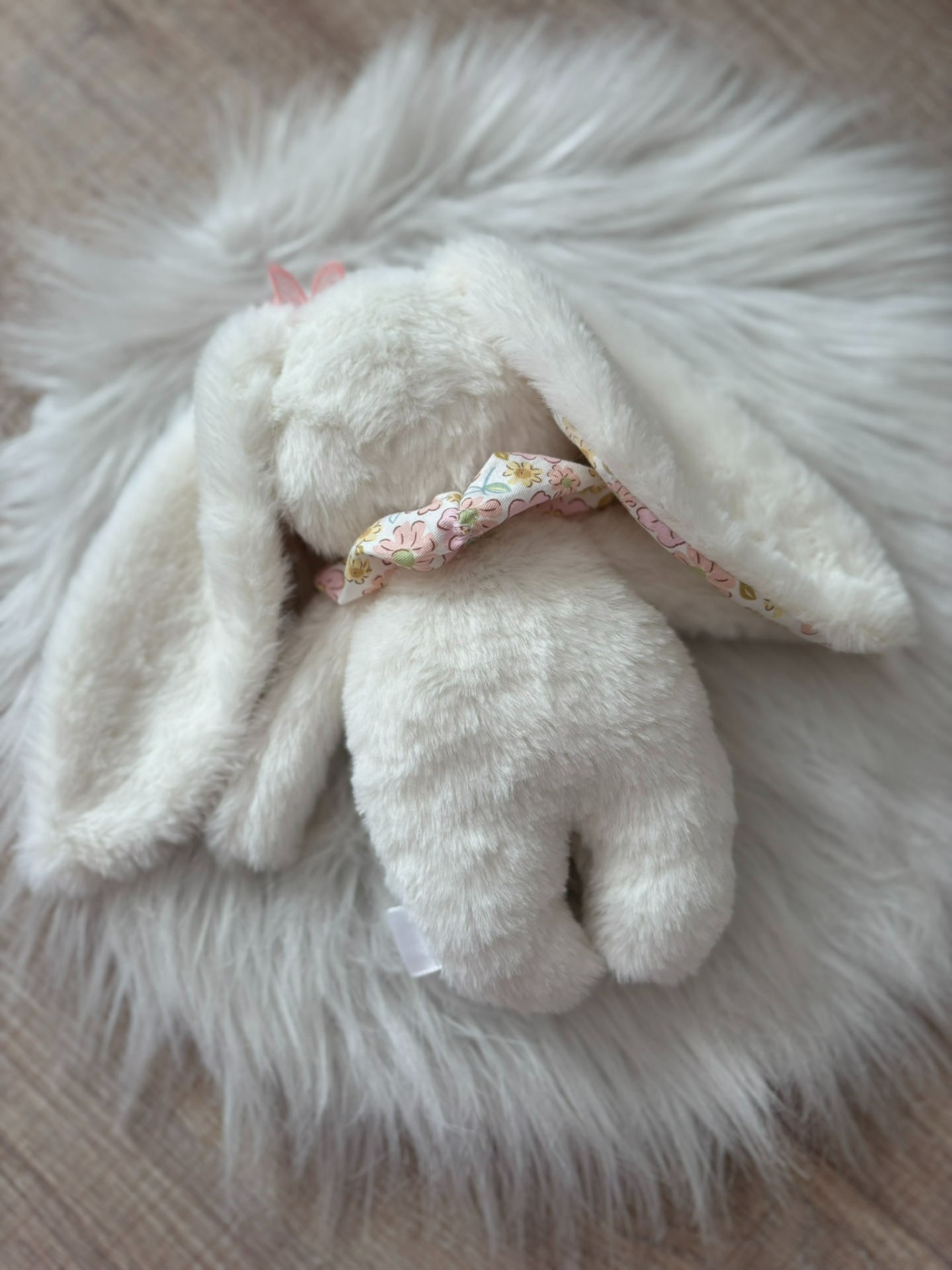 Plüss nyuszi- barack virágos